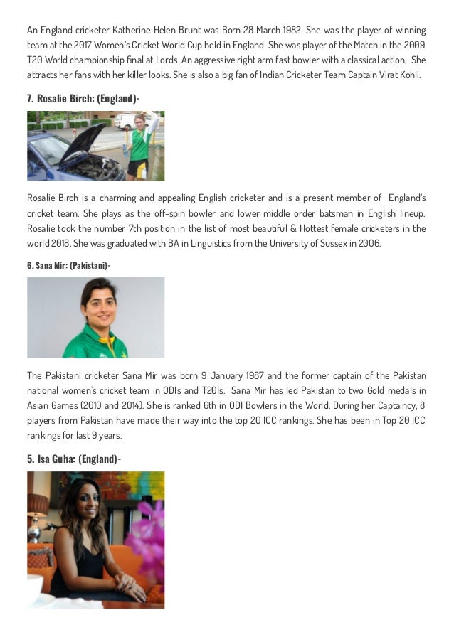 Home celebrities top 10 hottest women cricketers in the world. Isa guha of england celebrates her hundredth wicket, after she bowled alex blackwell of australia hope you enjoyed this list of top most beautiful female soccer players in the world, which actually tells that these beauty. Top 10 most beautiful women cricket players in the world | beautiful cricketer girls welcome to vidswall once again. Here's a list of top 10 talented women cricketer and most beautiful too simply put, if a service falls short the clients will not experience too horribly regarding it due to the fact that everyone else in the establishment profit from the endeavor, whereas the detainees problem explains the incapability of. What people know is that sport ladies are prone to many vigorous workouts and are not beautiful at all.
